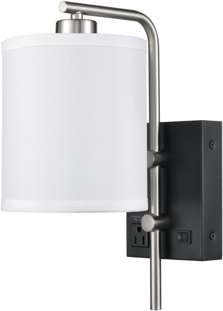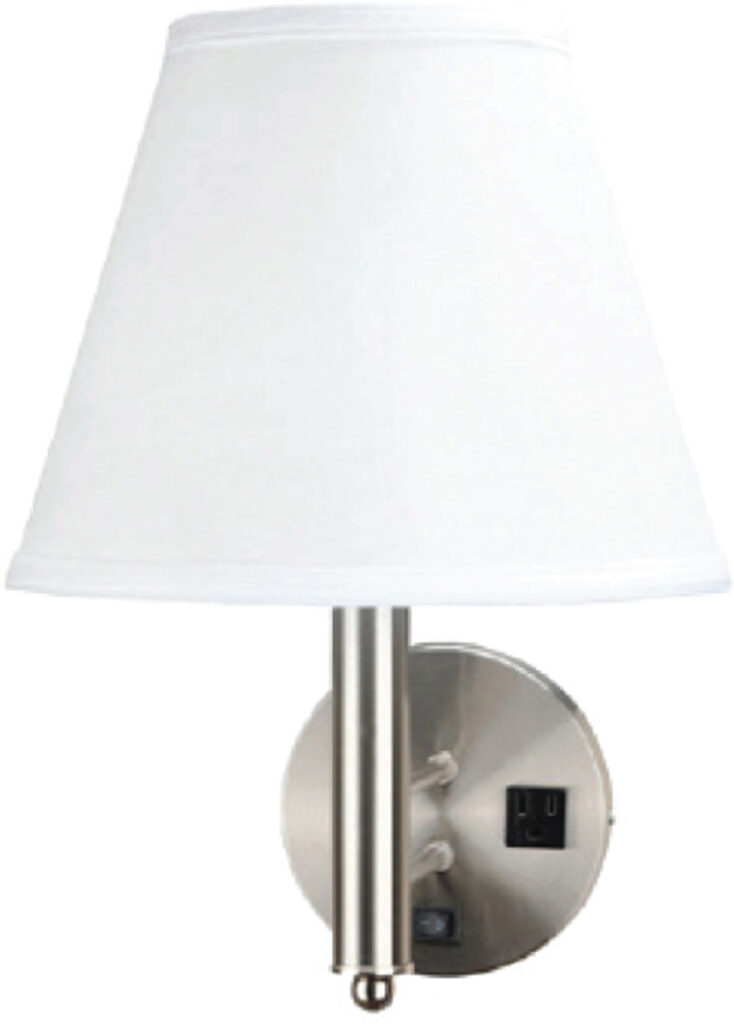 Brushed Nickel Armed Wall Lamp with 1 Outlet