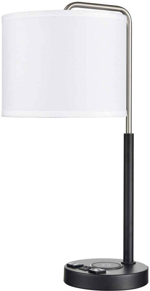 Valeria Twin Table Lamp with 2 Outlets, 1 USB-A & QI Wireless Charger